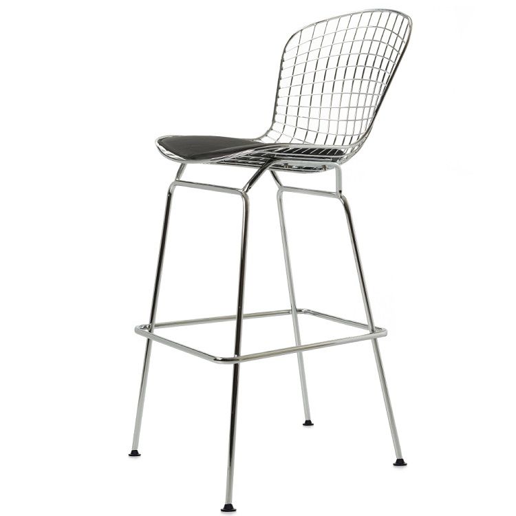 The Bertoia stool was designed in 1952 by Harry Bertoia as part of his iconic "Wire Collection" for Knoll International. Bertoia, a sculptor, was inspired by geometry and transparency, and he sought to create furniture that was "mostly made of air" by welding slender steel rods into lightweight, strong, and sculptural forms. The bar stool, along with other chairs in the collection, has been in continuous production since its debut and remains a classic in modern design.