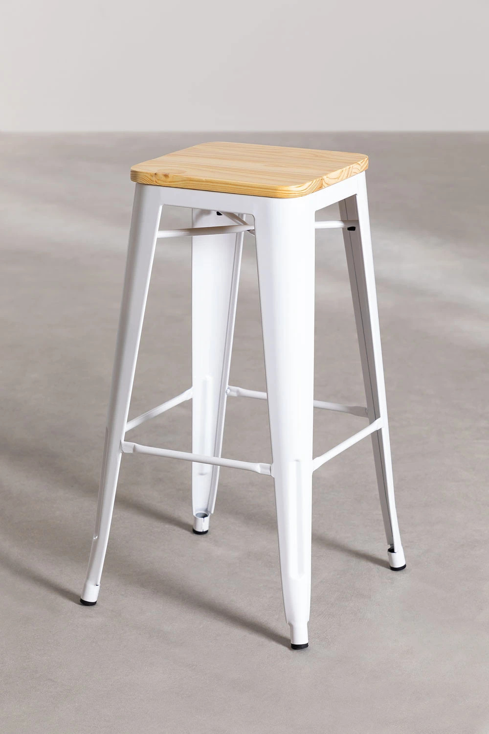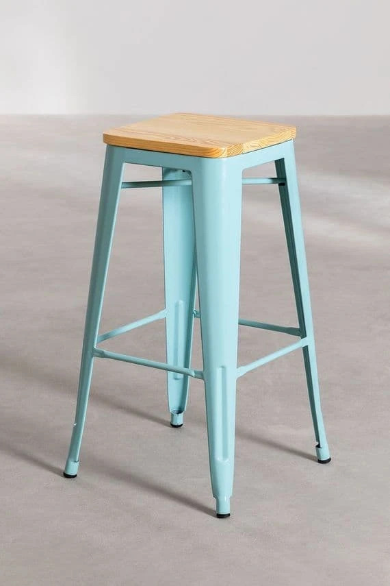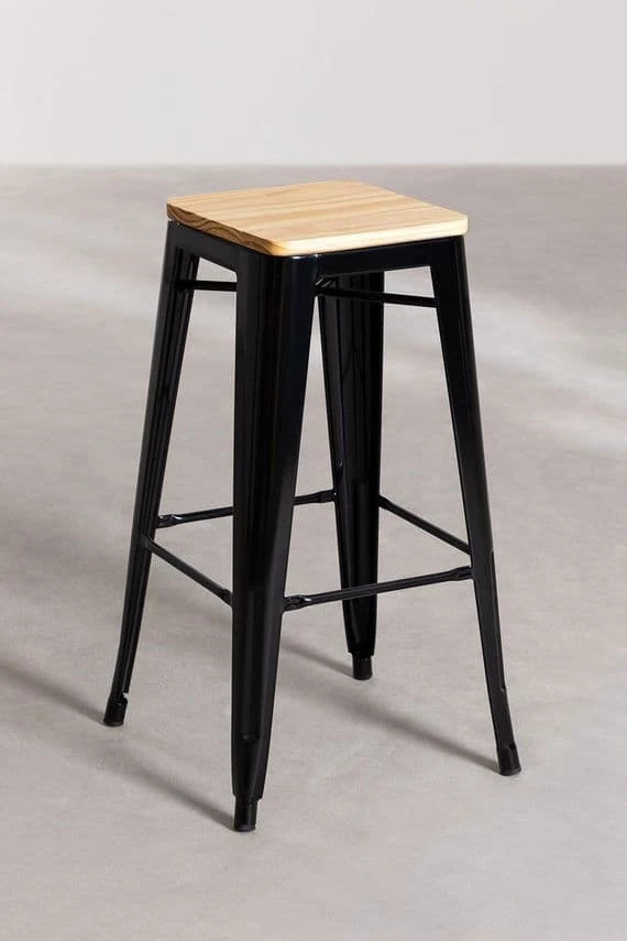 Tendency, versatility and sophistication are three of the characteristics that we can find in it. It is made of steel, a resistant and tenacious material, prepared to support more than 150 kg. The Wooden Tolix Bar Stool blends the best of two of our star products: the shiny finish of steel, available in various colours, and the pine wood seat, in natural or dark wood. Choose the one that best suits your spaces, giving them freshness and vitality! In addition, it's reinforced with metal rods that, together with the footrest bar, give it greater stability and comfort. Its use is exclusively for indoors, being perfect for bar areas, restaurants and kitchens, and thanks to its non-slip and scratch-resistant studs, you can use it on all types of flooring.