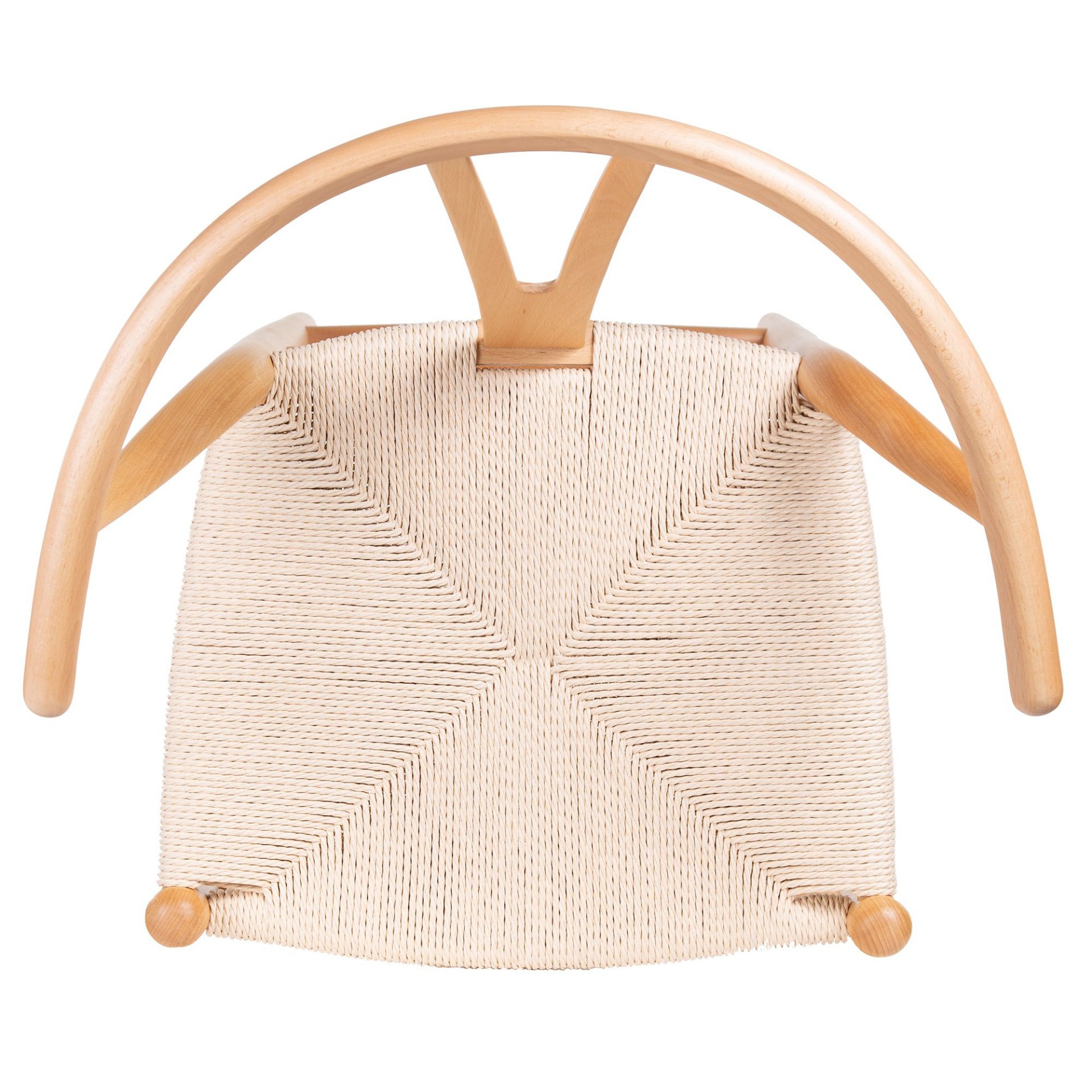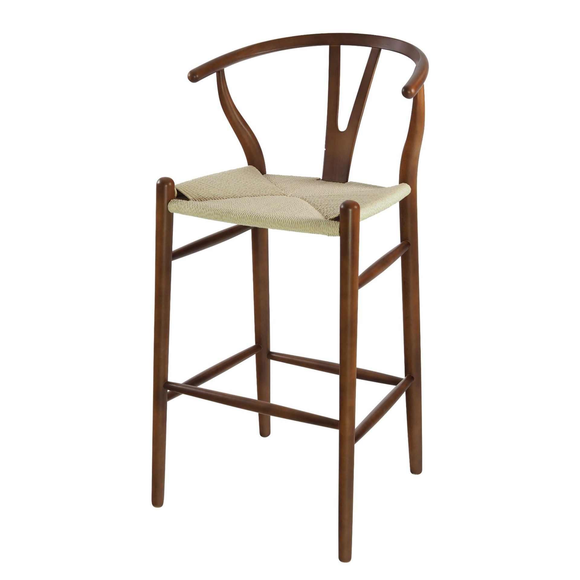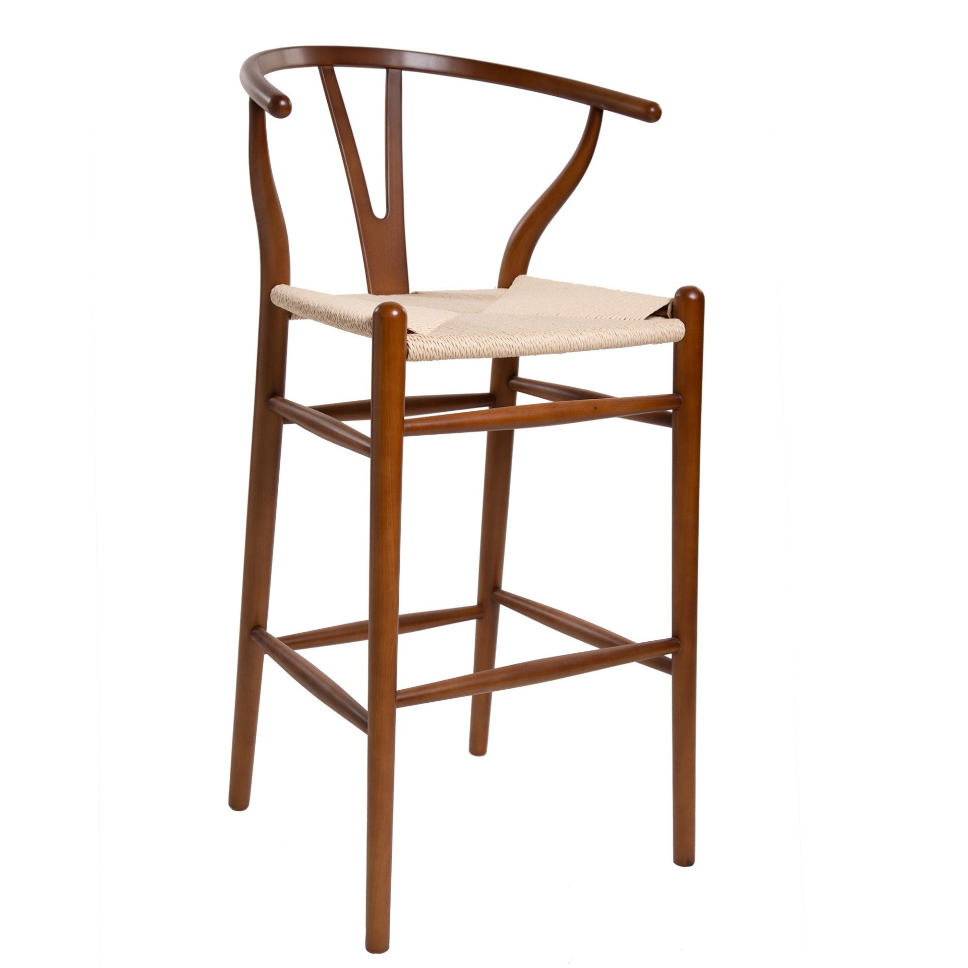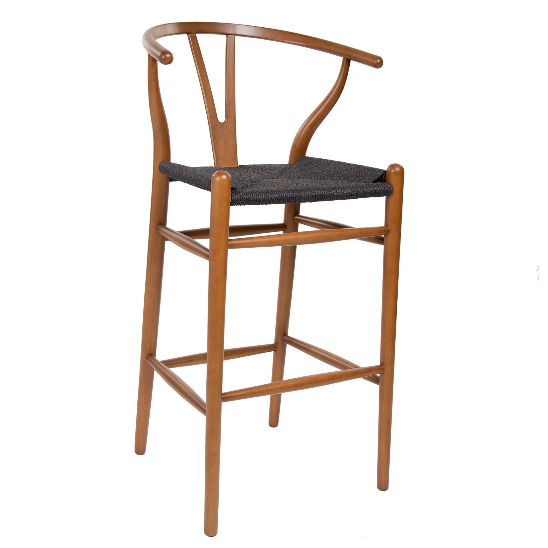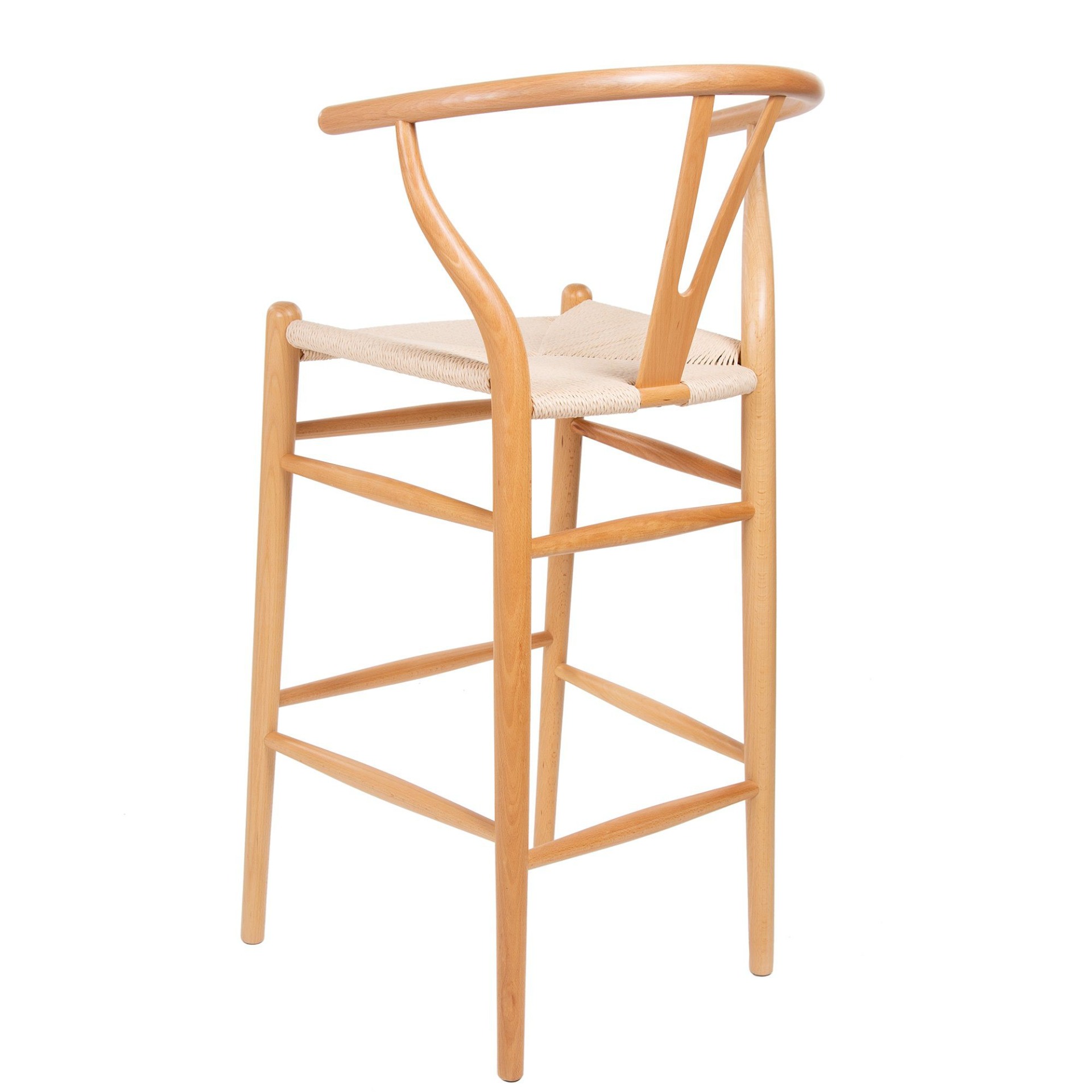 Inspired by Hans Wegner's 1949 design, the barstool has a graceful, sculptural design with an ash wood frame, ergonomic structure, and durable craftsmanship.